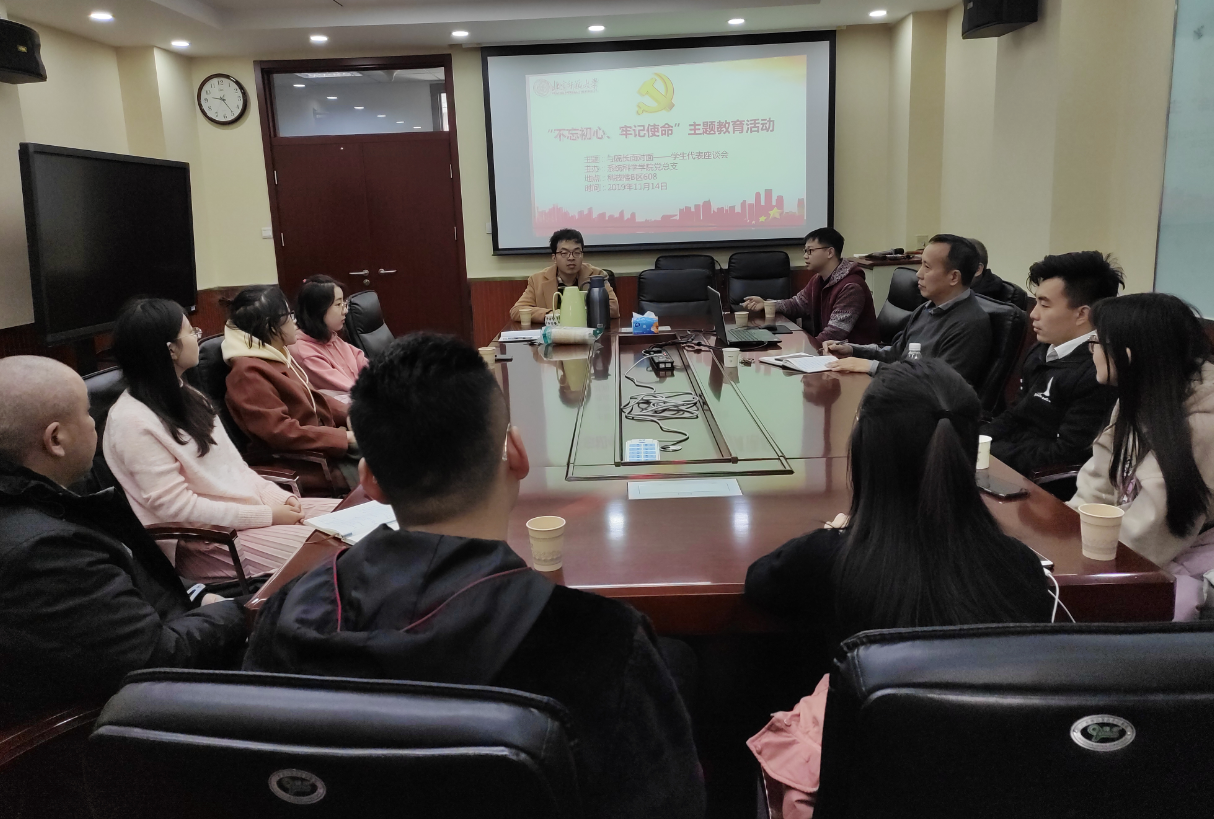2019年11月14日上午,万博体育app 召开第四次调研座谈会,院长陈晓松、副书记兼副院长周亚、院长助理王大辉代表新一届学院领导班子,与学院研究生学生代表恳谈,学院学生工作负责人李小萌也参加了本次会议。会议由副书记、副院长兼“不忘初心、牢记使命”主题教育领导工作小组组长周亚主持。
