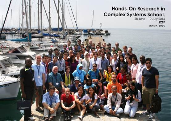 万博体育app 2013级博士生姜立于2015年6月27日至2015年7月12日访问ICTP,参加该中心举办的复杂系统研究暑期学校(Hands-On Research in Complex Systems School, smr 2752)。该暑期学校从2008年开始每年举办一次,旨在给青年科学家提供实验技术和计算建模等方面的训练。今年的讲座由美国科学院院士Harry L. Swinney等人主讲。访问期间,姜立同学张贴了题为“Obstacle Optimization for Increasing Panic Pedestrians Escape Speed”的海报,介绍了我们在行人疏散方面的工作。