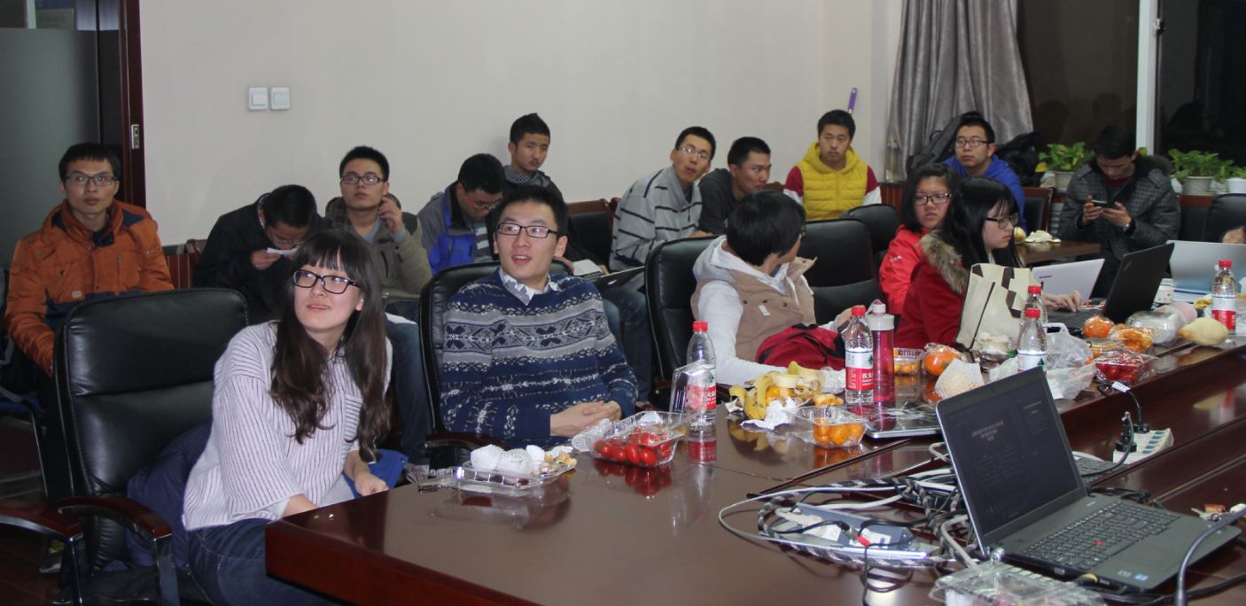 作为整个竞赛活动的一个环节,11月13日(周五)晚上19:00在英东楼217组织了以“吃喝玩乐”为主题的实验科学之夜,同学们进行了答辩热身,相互交流了研究的成绩,有的还做了现场实验。流利的英语表述和丰富的结果得到了Roehner教授的称赞。下面是一些实验之夜的现场照片。
