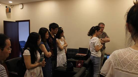 2016年6月9日,Guy Theraulaz教授与韩战钢教授组里的同学进行了座谈和学术交流。逐一听取了韩战钢教授组里的研究生的实验情况、工作汇报和各项目进展,并一一进行了点评。