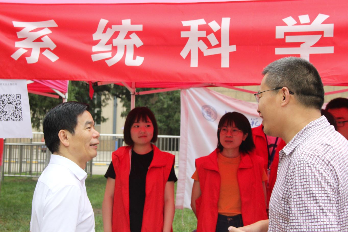 迎新过程中,程建平书记、董奇校长及学校职能部门负责人来万博体育app 迎新报到点视察工作,与李红刚书记进行了亲切的交流,了解了学院近几年招生和人才培养情况,充分肯定了系统科学的学科优势以及交叉学科的魅力,表扬了迎新志愿者的热情奉献,并对全院师生做出鼓励,激励大家再接再厉,在双一流这个崭新平台上取得更加卓越的成绩。在学院各部门共同努力下,万博体育app 新生报到工作在2018年9月2日下午顺利结束。