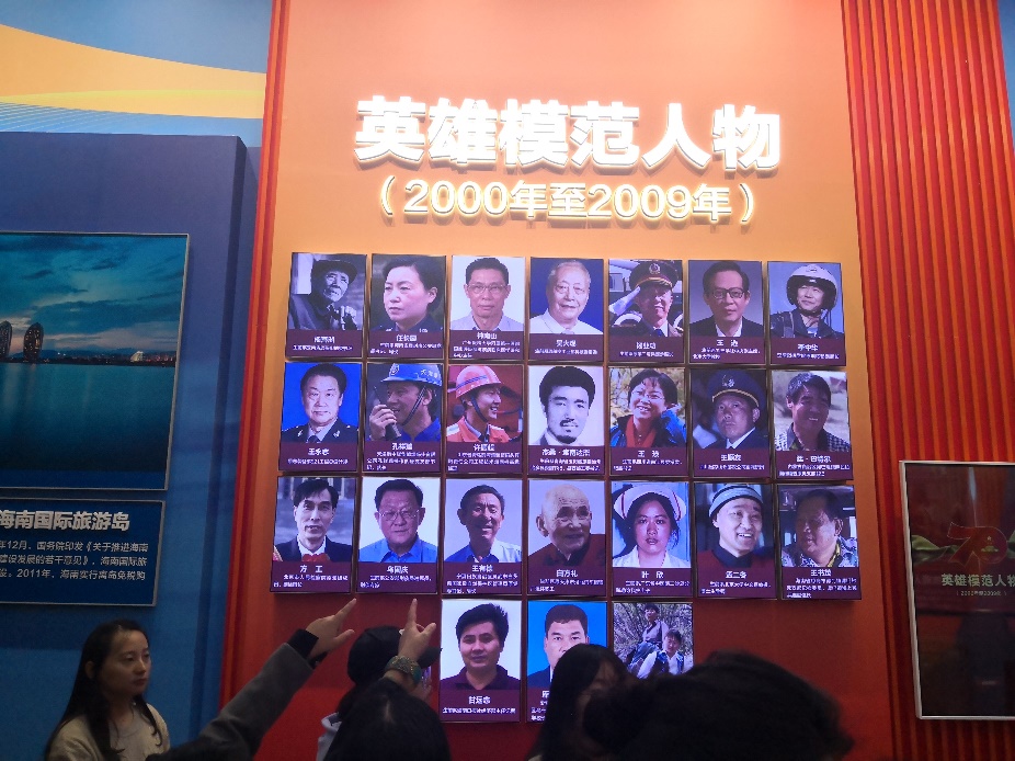 三是注重创新展览方式,这次成就展是按照年代线性逻辑来展开,像走到“时光隧道”一样,从1949年到现在70年的发展脉络,每个年龄段的人都能唤起记忆深处的共鸣。借助产品元件、沙盘模型等实物,对70年来相关领域取得的150个“第一”进行展示,并设计了醒目的标志。专门设置英雄模范墙,每隔十年集中展示这一阶段涌现的英雄模范人物,集中展现中华民族艰苦奋斗、奋发图强的时代精神。