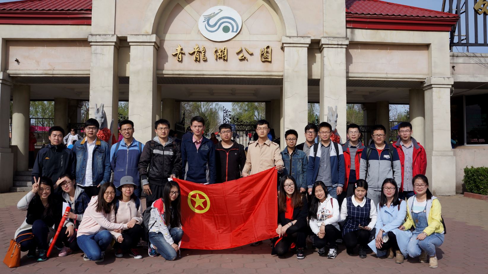 青龙湖公园门前合影