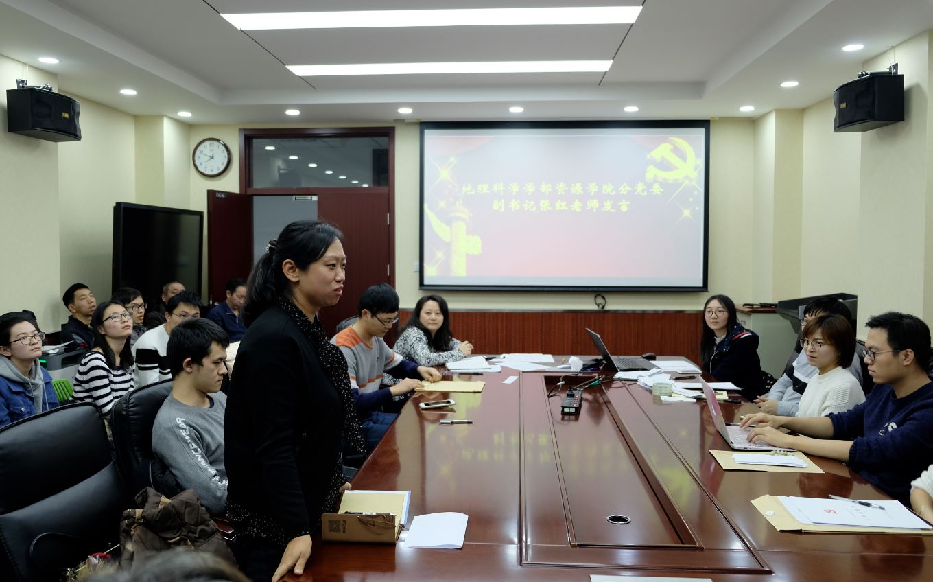 12月2日,万博体育app 直属党支部在科技楼608召开了党员发展大会。大会由辛茹月主持,共发展了齐孟娇、吴珺、刘奥强三名同志成为预备党员。参加本次大会的有地理科学学部资源学院分党委副书记张红老师,万博体育app 直属党支部统战委员狄增如老师,纪检委员樊瑛老师,组织委员刘艳老师,宣传委员陈家伟老师、学工负责人李小萌老师以及全体教工党员、学生党员、入党积极分子。
