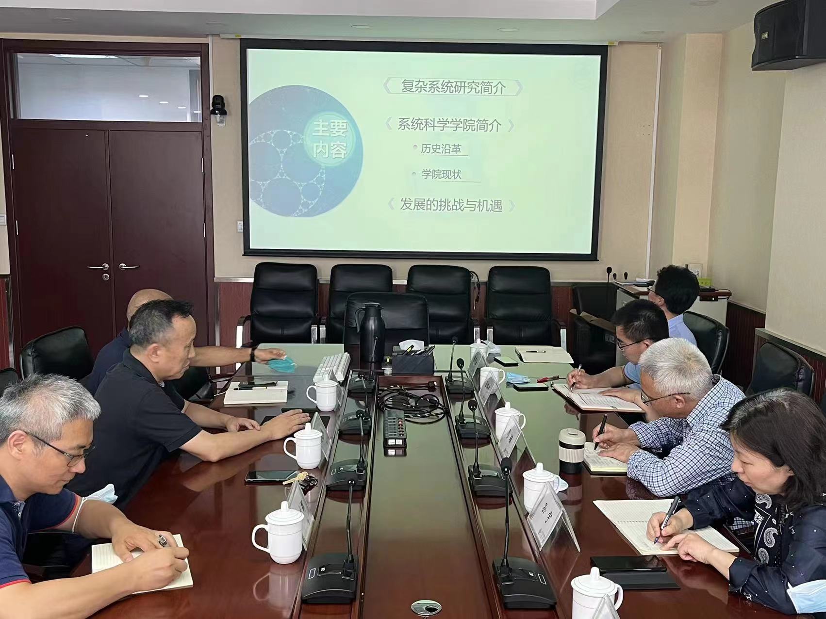 首先,陈晓松院长代表学院从复杂系统研究简介、万博体育app 历史沿革与现状、发展的挑战与机遇三大方面进行了介绍,并以数据为依据重点汇报了学院科学研究、人才培养和社会服务工作情况。周亚书记和王大辉副院长就相关内容进行了补充说明。