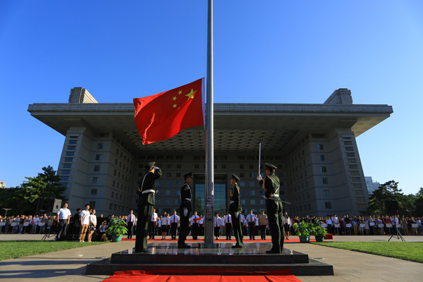 7月1日,万博体育app 在京师广场举行纪念建党94周年升旗仪式暨新党员宣誓和老党员重温入党誓词活动。校党委副书记刘利,副校级干部周作宇,校长助理陈丽、张强以及有关机关部处、各院系党政负责同志出席活动,新发展的教工党员和学生党员共计1200余人参加活动。升旗仪式由副校级干部周作宇主持。