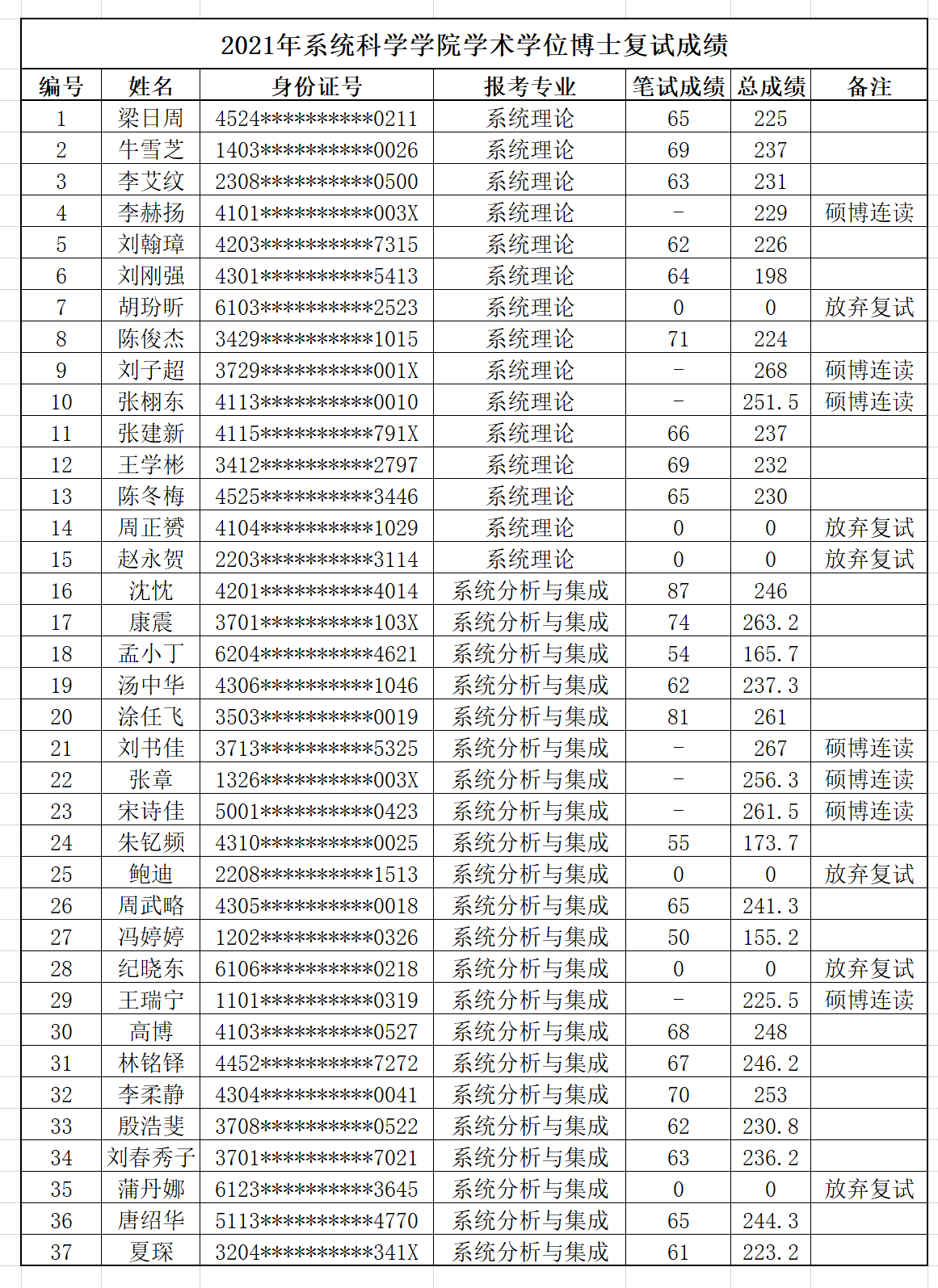 【招生】2021年万博体育app 学术学位博士复试成绩